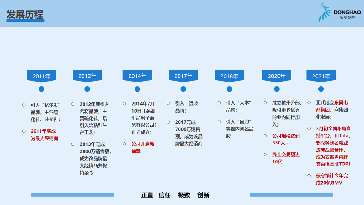 蕪湖東昊網(wǎng)絡(luò)科技有限公司,成立于 2014 年,是一家以互聯(lián)網(wǎng)平臺(tái)銷售為核心的電子商務(wù)運(yùn)營商,公司成立以來,始終專注于休閑運(yùn)動(dòng)鞋的互聯(lián)網(wǎng)銷售業(yè)務(wù),產(chǎn)品線覆蓋硫化鞋、注塑鞋、冷粘鞋,在互聯(lián)網(wǎng)二級(jí)類目單品牌排名前三,綜合成績(jī)排名TOP1;